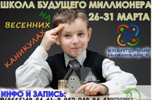 С 26 по 31 марта 2018 года в период весенних каникул на базе детского технопарка «Кванториум» в очередной раз организуется тематическая лагерная смена «Школа будущего миллионера» для учащихся общеобразовательных учреждений.