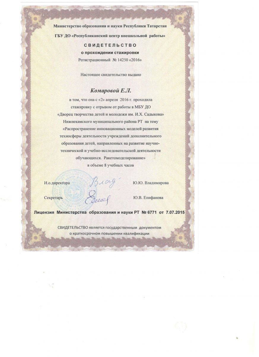 Свидетельство о стажировке Комарова