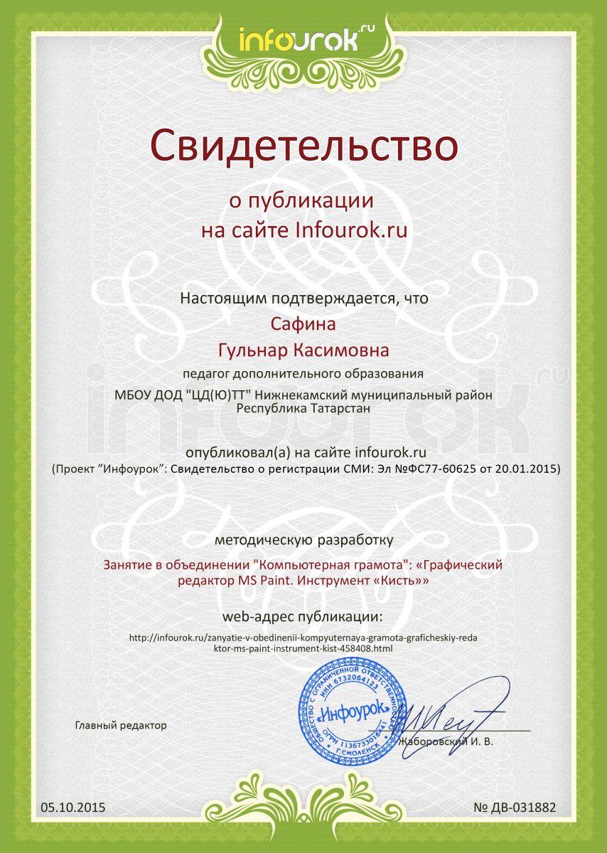 Сертификат проекта Infourok_ru № ДВ-031882_Сафина_2015.jpg