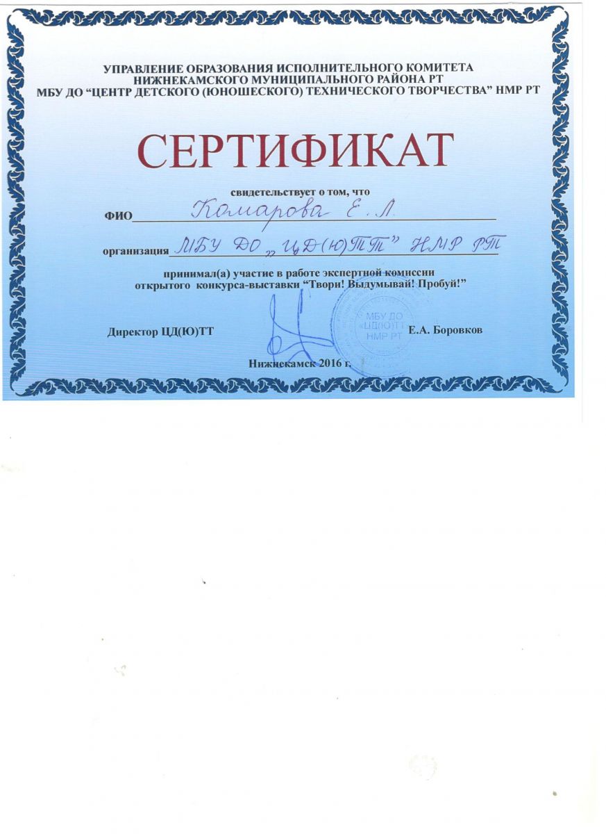 Сертификат эксперта ТВП Комарова 2016