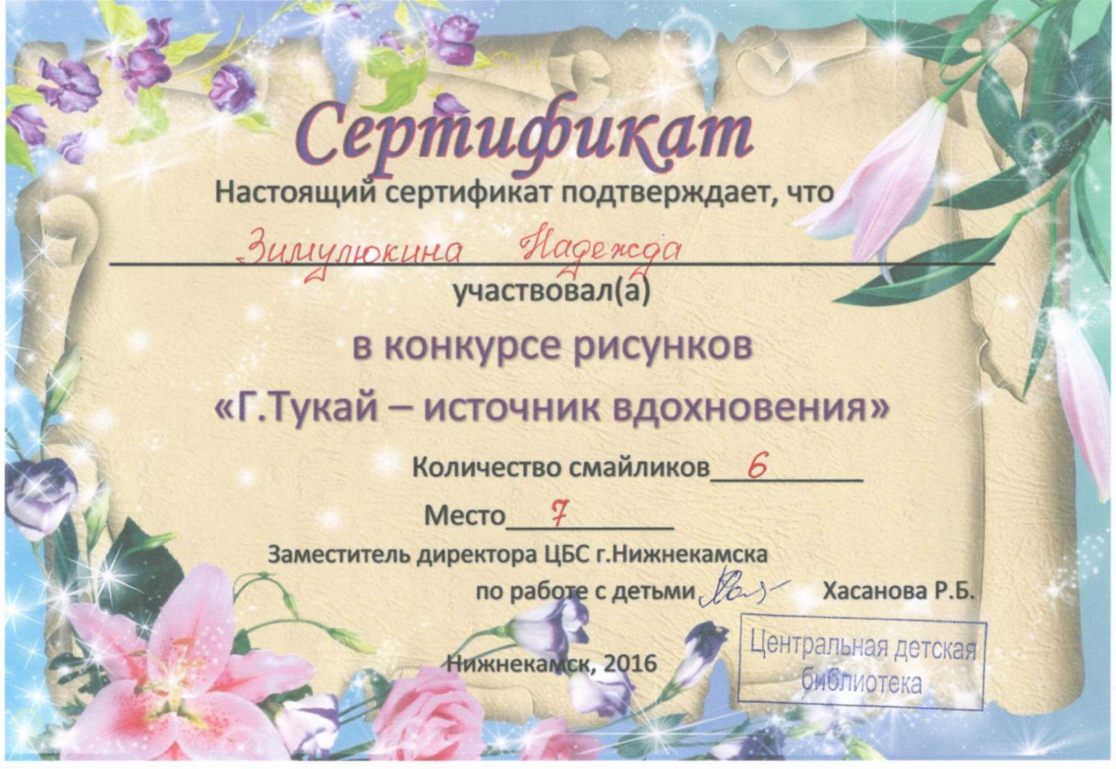 Сертификат Зимулюкина_Тукай источник вдохновения_РТ_апрель 2016