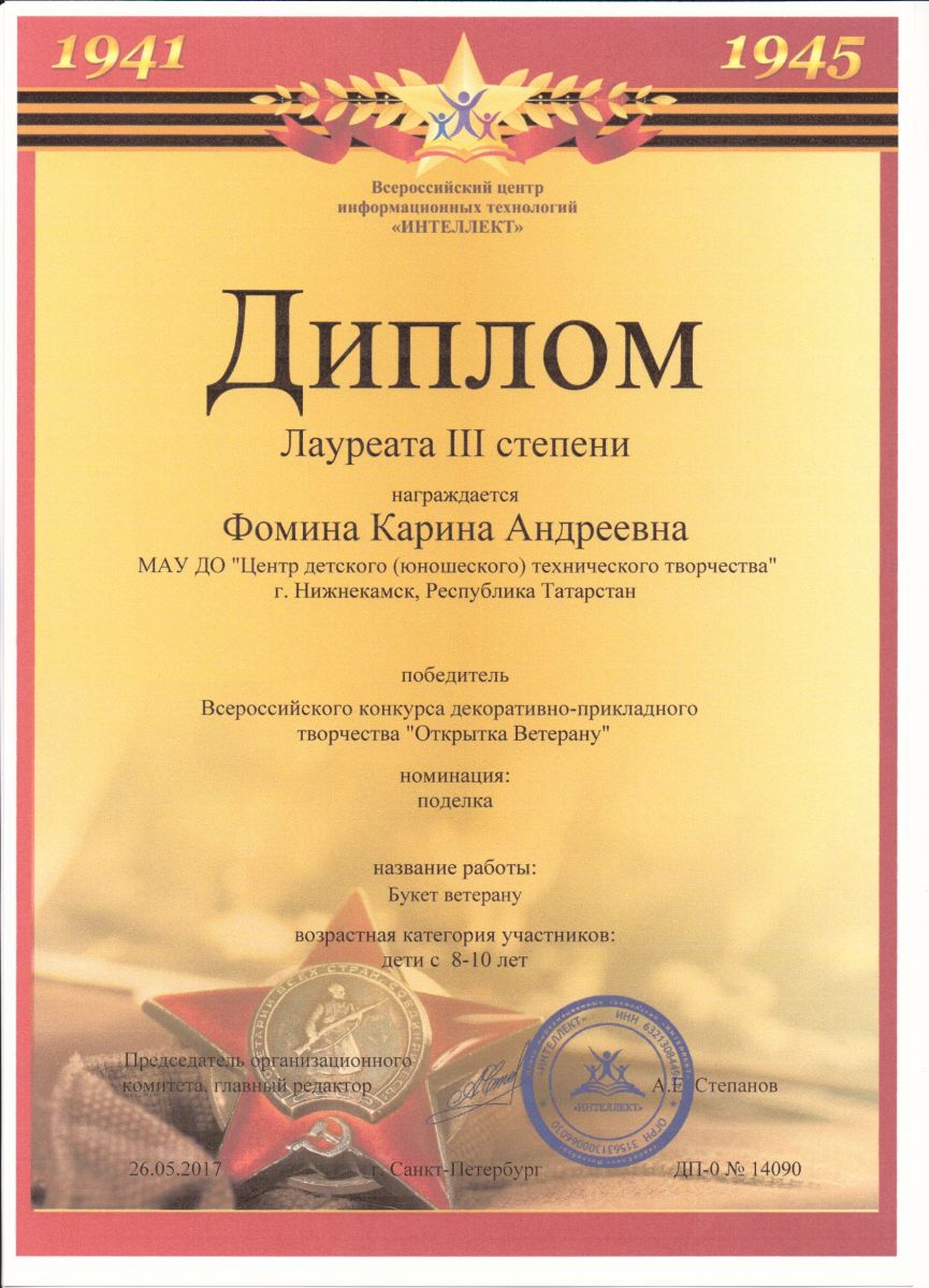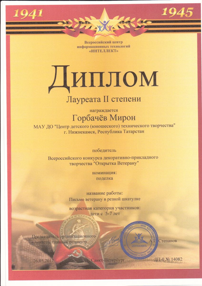 Диплом 2 степ Горбачёв ПДО Комарова Всер конк Подарок ветерану 2017.jpg