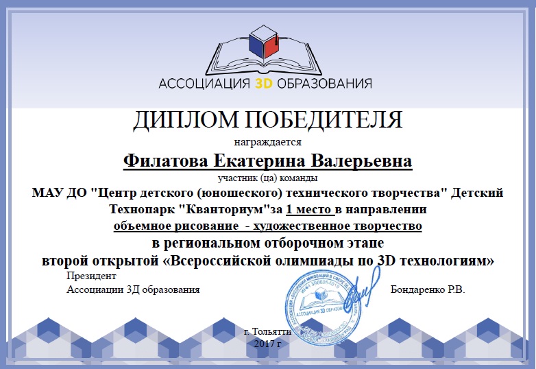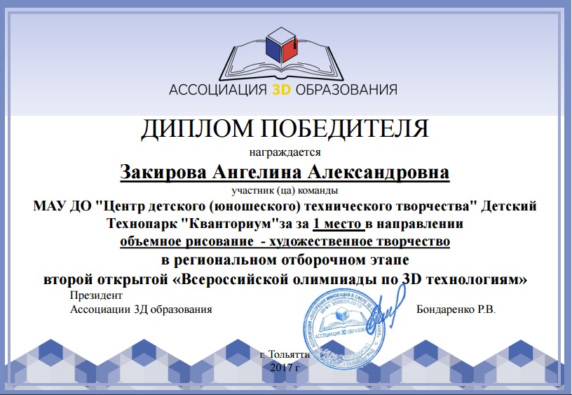 Региональный открытый отборочный этап второй Всероссийской Олимпиады по 3D технологиям (2-3 марта 2017 года, г. Тольятти)