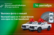Выложить фото на своей странице в социальной сети ВКонтакте с двумя обязательными хэштегами #ВсейСемьейНаВыборыи #ТатарстанАлга