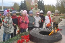 Поздравляем С Днем Победы! Дети 14 группы совместно с родителями почтили память погибших солдат у вечного огня и возложили цветы