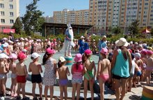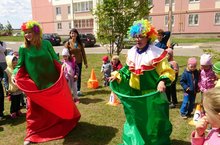 Сегодня наши педагоги и воспитанники организовали праздник двора для 34 микрорайона. Наталья Тимирбаевна,в роли ведущей,пригласила на праздник замечательных клоунов, которые развлекали детей. А воспитанники пели песни и рассказывали стихи. Все дети получили сладкие подарки.
