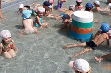 Как нам повезло,что в детском саду есть уличный бассейн!!! Сегодня в гости к детям приплыли русалки и царь морей Нептун. Было весело и мокро!)))
