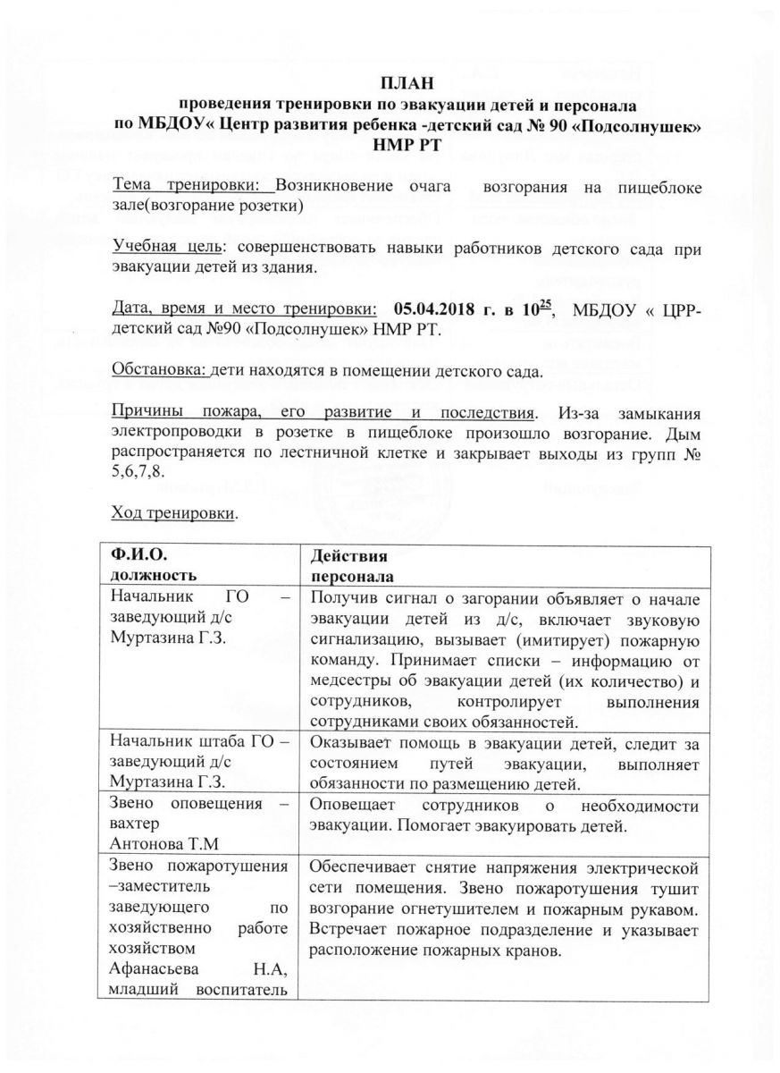 Объектовая тренировка по пожарной безопасности 05.04.2018