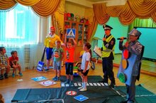 Сегодня, артисты театра"Калейдоскоп" г.Наб.Челны, показали спектакль по правилам дорожного движения. Дети средних, старших и подготовительных к школе групп в увлекательной игре закрепили ПДД.
