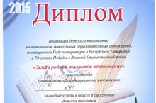 15 мая состоялся финал муниципального фестиваля детского творчества "Земли родной талант и вдохновение", посвящённногоГоду Литературы и 70-летию Победы в ВОВ. Воспитанники нашего детского сада выступили в номинации "Хореография" с танцевальной композицией "Серёжкина пластинка" и завоевали диплом. Поздравляем с победой воспитанников и родителей!