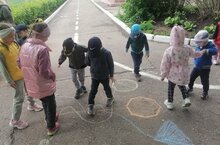 Сегодня в нашем детском саду прошёл "День игр на асфальте". День выдался солнечный, как по заказу. Игры на асфальте многофункциональны и вариативны. В процессе их проведения совершенствуются разные виды движений, варьируются способы организации детей. Используя один рисунок, можно организовать несколько игр для детей разного возраста и различной физической подготовленности – игр, направленных на развитие двигательных навыков с учетом зоны ближайшего развития. Даже родители сегодня должны были пройти полосу препятствия чтобы довести ребёнка до прогулочной территории.