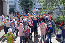 10 июня в нашем детском саду прошел флешмоб, посвященный Дню России. День России отмечается 12 июня, а в детских садах страны эту дату уже начали праздновать - причем ярко и необычно. Поздравить свою большую Родину ее маленькие жители решили танцевальным флешмобом «Наш дом - Россия!».