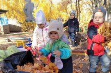 Детвора тоже радуется этому времени года и наслаждается играми с разноцветными листьями. -