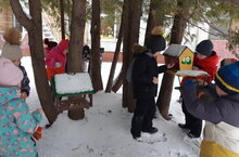 Зимой у птиц потребность в корме значительно больше: ведь кроме пропитания нужно еще обеспечить обогрев тела. А вся еда или засыпана снегом, или спрятана далеко. Воспитанники нашего детского сада отправившись на прогулку захватили с собой лакомство для пернатых. Когда ребята отошли тут же прилетели птички, чтобы продегустировать лакомство.