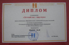 Сегодня, 4 сентября 2014 года на педагогическом совещании работников дошкольного образования НМР были подведены итоги муниципального смотра-конкурса по подготовке к учебному году. Наш детский сад награждён дипломом "Детский сад – мир игры"! Поздравляем весь коллектив и родителей с блестящим результатом!