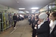 Студенты и преподаватели услышав завывание сирены, в спешном порядке спускаются в укрытие.