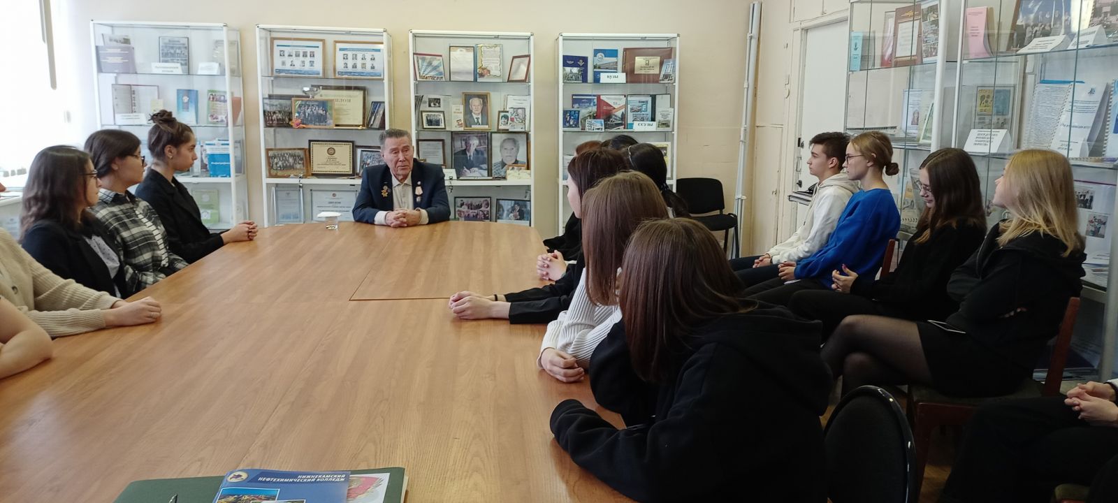 Опубликовано: 30.11.202228 ноября в музее образования прошёл музейный урок для студентов педагогического колледжа. Сегодня его провёл Валеев Ильгиз Ганеевич, Отличник Нефтехимпрома СССР, заслуженный учитель РТ, заслуженный учитель РФ, награждённый орденом «Знак Почёта».