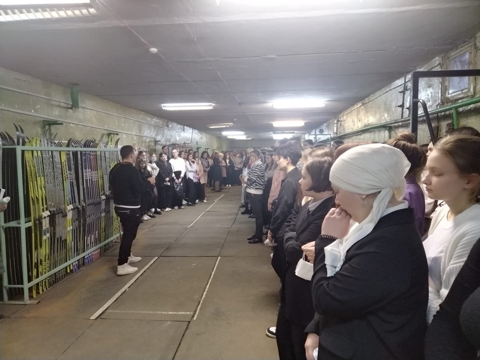 Студенты и преподаватели услышав завывание сирены, в спешном порядке спускаются в укрытие.