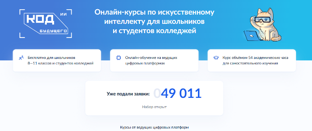 Чтобы принять участие в проекте «Код будущего. Искусственный интеллект», необходимо подать заявление на ЕПГУ (https://gosuslugi.ru/ai).