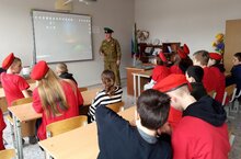Пограничник запаса РОО Ветеранов боевых действий и Пограничник запаса ОТ "Содружество Пограничников" Шарипов Рамай Сабирьянович, провел сегодня для Юнармейцев урок мужества: "Документы: хроника мужества пограничников в ВОВ."