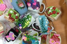В преддверии праздника мам нашим гостьям была предложена лепка скульптурной композиции для бокала. Сначала участницы мастер-класса испугались, совсем не предполагая, насколько лепка - занятие кропотливое и требующее огромного терпения. Но постепенно войдя во вкус, настолько увлеклись, что даже пожелали записаться на уроки к педагогу. Фантазия разыгралась как у детей. И вот результат одного занятия. Посмотрите, правда, очень заманчиво сделать для себя такой милый подарок? -