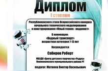 Именно благодаря своим способностям и наставлениям педагога обучающийся объединения "Картинг" - Сабиров Роберт, стал обладателем диплома 1 степени в Республиканском этапе Всероссийского конкурса начального технического моделирования и конструирования "Юный техник-моделист".