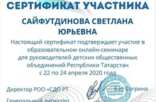 С 22 по 24 апреля 2020 года прошёл онлайн-семинар для педагогов, педагогов организаторов и руководителей детских общественных объединений Республики Татарстан. В данном семираре участие приняла заведующая отделом ЦДТ Радуга Сайфутдинова Светлана Юрьевна. Программа семинара предполагала