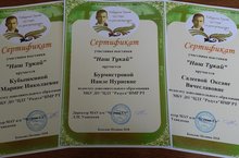 Педагоги Салеева Оксана Вячеславовна, Кубышкина Марина Николаевна и Бурмистрова Наиля Нуриевна награждены сертификатами участника выставки "Наш Тукай".