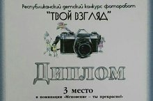 Поздравляем победителей Республиканского детского конкурса фоторабот "Твой взгляд". Кулушева Владлена диплом 3 степени в номинации "Мгновение - ты прекрасно!", руководитель Сайфутдинова Светлана Юрьевна.