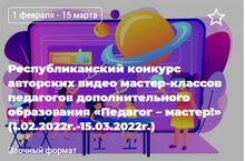 Республиканский конкурс авторских видео мастер-классов педагогов дополнительного образования "Педагог-мастер!" 03.02.2022