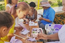 Педагоги нашего Центра учили плести венки из полевых цветов и мастерить красивые ромашки каждого желающего. -