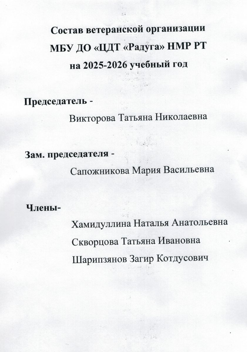 Состав ветеранской организации МБУ ДО ЦДТ "Радуга" на 2025-2026 учебный год