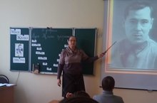 В рамках декады Родного языка 15 февраля учитель татарского языка и литературы Тазеева А.М. провела урок-путешествие "По следам Мусы Джалиля". Учащиеся 8а и 8б класса обобщили и расширили зания о великом поэте и герое Советского Союза.