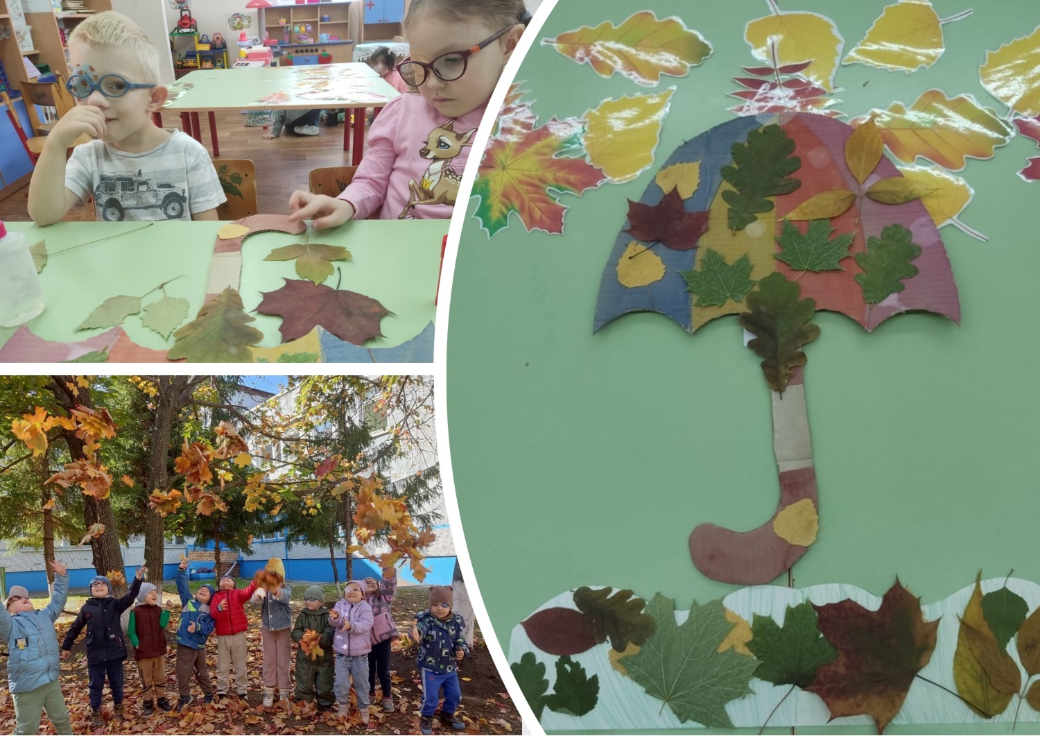 Воспитанники группы №3 вместе с воспитателем рассматривали листья , искали сходство и различие, определяли, с какого дерева листочек.Чтобы можно было подольше любоваться красотой осенних листьев, ребята выполнили коллективную работу "Осенний листопад " . А закончился день настоящим листопадом на улице . -