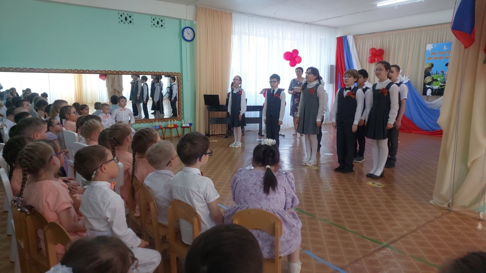 5 мая для обучающихся и родителей, дедушек и бабушек учреждения прозвучали песни и стихи военных лет, которые исполнили воспитанники подготовительных групп и учащиеся блока начальной школы.