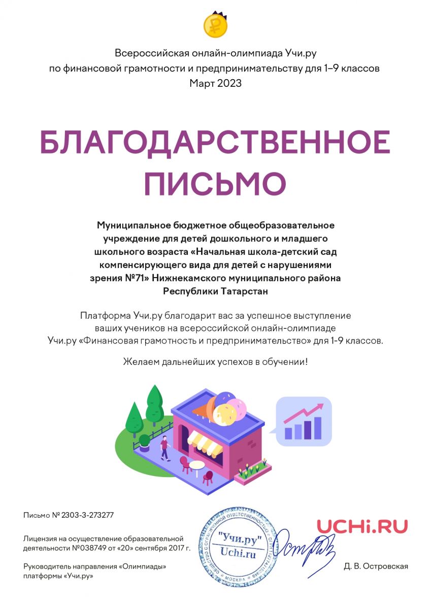 Муниципальное бюджетное общеобразовательное учреждение для детей дошкольного и младшего школьного возраста «Начальная школа-детский сад компенсирующего вида для детей с нарушениями зрения №71» Нижнекамского муниципального района Республики Татарстан/Татарстан Республикасы Түбән Кама муниципаль районының "Күрү сәләтенә зыян килгән балаларны тернәкләндерүче 71 нче башлангыч мәктәп - балалар бакчасы" гомуми белем бирүче мәктәпкәчә һәм кеше яшьтәге мәктәп балалары өчен муниципаль бюджет учреждениесе - новости