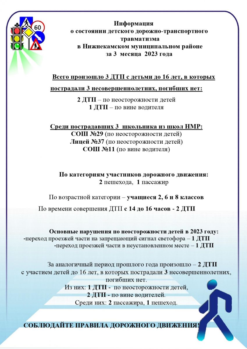 Информация о состоянии детского дорожно-транспортного травматизма в Нижнекамском муниципальном районе за 3 месяца 2023 года