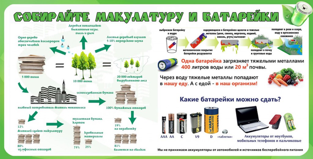 В рамках муниципального санитарно-экологического двухмесячника "Эковесна" объявляется сбор макулатуры и батареек