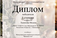 Победа в Международном творческом конкурсе «Времена года» 14.01.2026