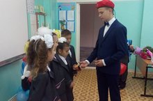 С целью безопасности на дорогах от ГИБДД первоклассникам были вручены светоотражающие фликеры. А помогли их вручить юнармеец Гора Алексей.