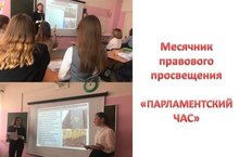 19.10.2017г. в рамках месячника правового просвещения силами учащихся 10А класса социально-экономического профиля для учеников 8-х классов в школе был организован и проведён «Парламентский час», посвящённый положениям Конституции Республики Татарстан.