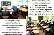 В рамках работы базовой школы по направлению «Сетевое взаимодействие с образовательными учреждениями с целью передачи лучших образовательных практик в области ИКТ в учебной и во внеурочной деятельности» 24 ноября 2016 г. учителя татарского языка и литературы показали открытые уроки и дали мастер-класс по использованию электронных ресурсов на уроках татарского языка в начальных классах для студентов ГАПОУ «Нижнекамский педагогический колледж».