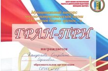 Кандакова Елизавета, ученица 6б класса, приняла участие в муниципальном конкурсе военно-патриотической песни "От героев былых времён..." и получила наивысшую награду - Гран-при!!! Поздравляем Лизу, желаем дальнейших творческих успехов в вокальном искусстве ей и наставнику в лице учителя музыки Аглеевой Ф.С.! -