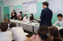 Выступление директора Бликина Андрея Ивановича было посвящено будущему самоопределению учеников: он ознакомил присутствующих с результатами деятельности школы, ознакомил с профилями обучения, ориентированными на естественно-научную и общественно-научную области.