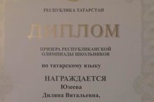 Поздравляем призёра республиканской олимпиады по татарскому языку Юзееву Диляну, ученицу 4Б класса, и ее учителя Никитину Альбину Егоровну.