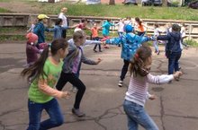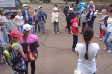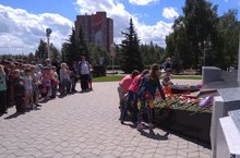 Дети возложили цветы к Монументу Победы, почтили память павших минутой молчания. В ДНТ был просмотр фильма "Девочка ищет отца".