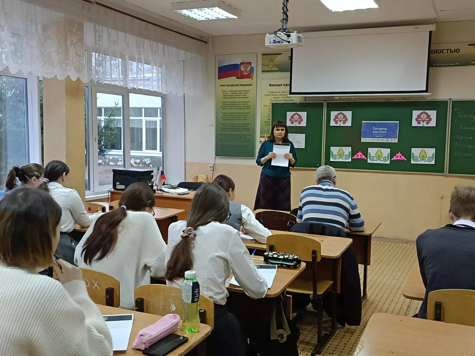 Опубликовано: 14.11.2025Быел " Татарча диктант" акциясе 10нчы мәртәбә оештырылды. Мәктәбебез укытучылары,укучылары,ата- аналар,Ижевск юридик колледж студентлары да бу чарага кушылдылар. Диктант язу өчен Каюм Насыйриның "Кабуснамә" хикәясеннән өзек тәкъдим ителгән иде. Чарага йөздән артык кеше килде. Башлангыч сыйныф укучылары да читтә калмады, татарча флешмобта биеп күңел ачтылар.