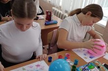 В рамках недели " Искусства" в 6 "Б" и 3 "А" классах были проведены мастер - классы "Волшебные цветы". Рисование цветов с помощью воздушного шарика. Случайные цветовые пятна при малой доработке превращаются в мальвы,ирисы,лилии,гладиолусы,настурции, розы и маки. Бүген укучылар шар ярдәмендә чәчәкләр рәсемен ясауның яңа ысулы белән таныштылар.