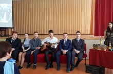 В рамках предметной недели русского языка и литературы 21 февраля в школе прошло мероприятие «Поэзия, которую поют», в котором принимали активное участие ученики 10, 9А, 9Б, 9В, 8А, 8Б и 8В классов. В вечере приняли участие нижнекамский поэт Борис Пермин и вокальный ансамбль «Вдохновение» под руководством Габдуллы Шарапова.