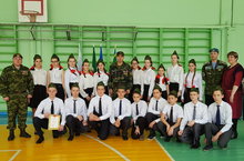 Среди 9-11 классов прошла военно спортивная эстафета. Было несколько станций: дартс, сборка-разборка автомата Калашникова, оказание первой медицинской помощи, поднятие гири, противогазы, прыжки на скакалке и перетягивание канатов